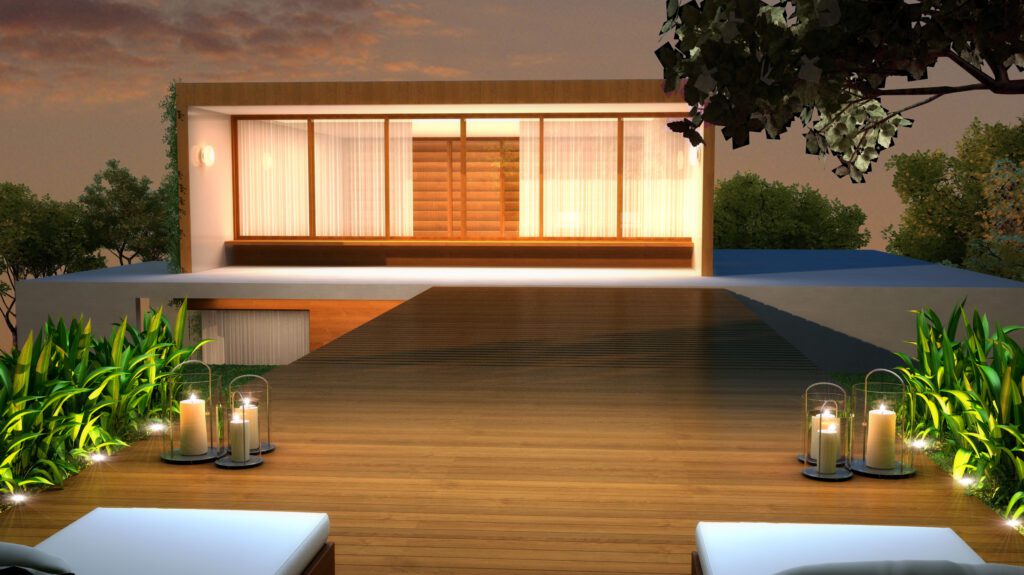 Os volumes menores protegem as esquadrias das intempéries, permitindo que, mesmo em condições climáticas extremas, a casa permaneça aberta e conectada ao exterior.