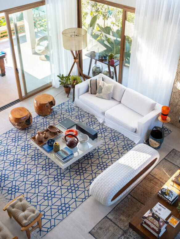 A principal função dessa residência é promover a convivência familiar e social, por isso ampliamos para 6 suítes, todas confortáveis e acolhedoras, além de criar uma ampla área social e de jantar com pé direito duplo.