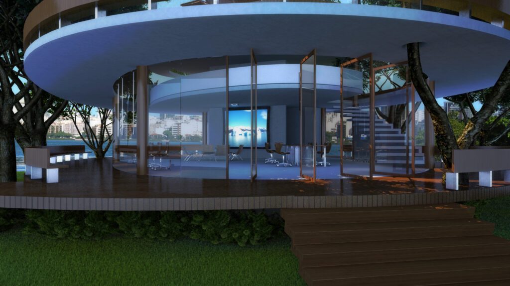 Fomos convidados pela Secretaria Estadual do Ambiente do Rio de Janeiro para criar um espaço educacional focado em diferentes aspectos do meio ambiente, localizado à beira da Lagoa Rodrigo de Freitas, uma das áreas mais visitadas da cidade. Propusemos um edifício com uma morfologia diferenciada, incorporando diversas soluções sustentáveis, tornando-o atraente para os visitantes.
